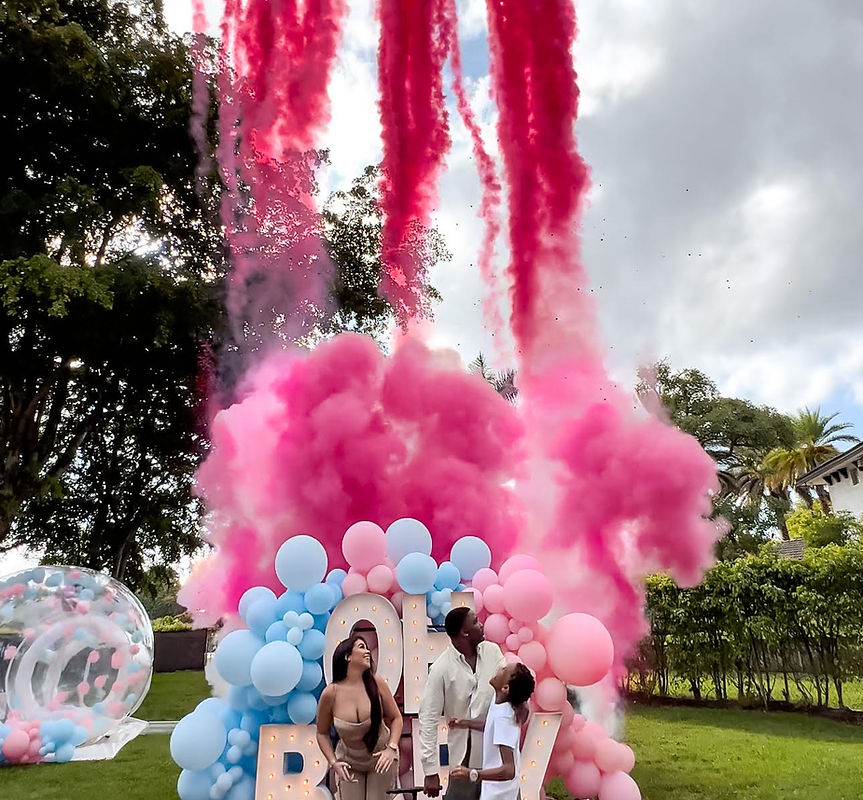 Гендерные фейерверки представляют собой тот же принцип работы фейерверка, только вместо взрывного состова, внутри находится цветной порошок, который срабатывает высоко в небе. Явление быстрое, красивое, но если будет сильный ветер, всю эту красоту моментально сдует.